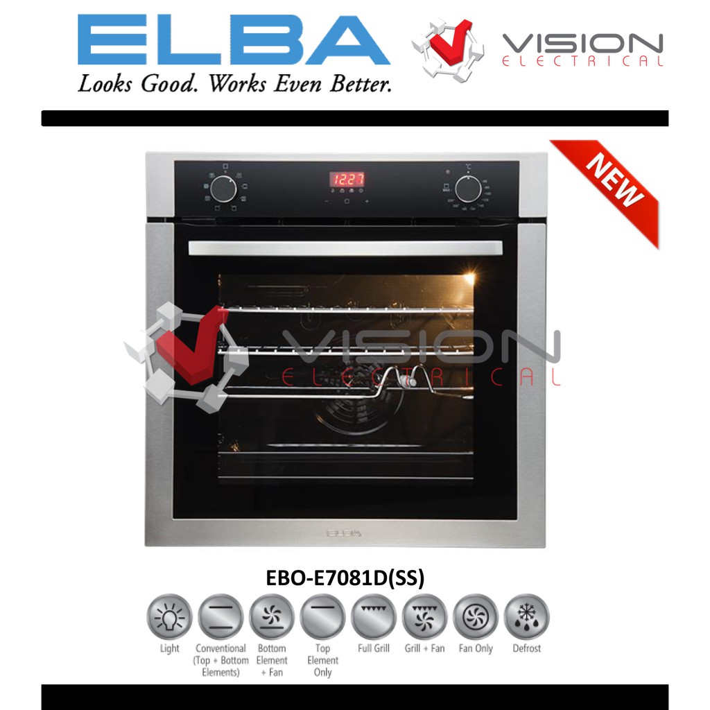 Elba authorised dealer 71l 7 functions built in oven mbo 7701m larger than elba oven 6840ss ebo f5660 bk similar elba ebo e7081d ss rm 1 250 00 lazada sponsored.